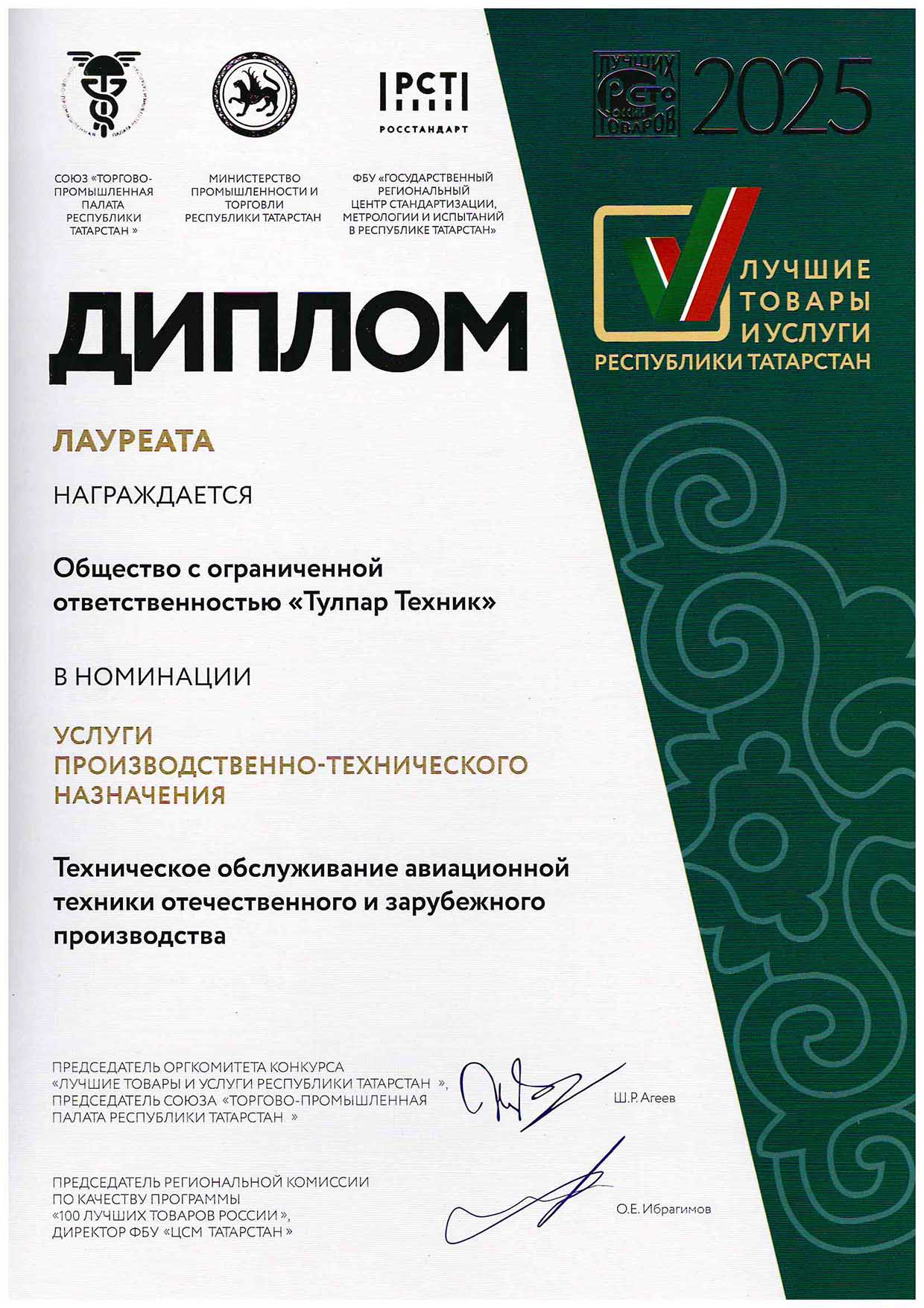 Конкурс «Лучшие товары и услуги РТ» – «Техническое обслуживание и ремонт ВС»